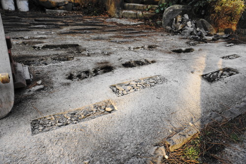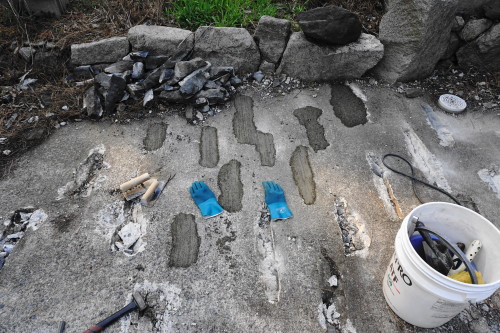 海の家 2017/03/22 梅雨入りまでに 3月18日 今日も天気が好いみたいだ 前日に駐車場の凸を半分ほど取り除いたから 今日は残り半分をハツリ殺してやる ということで 午後1頃からドガガガガ!ドガガガガ!とハツリ始める ということで 午後5時で終了 もっと早くいけると思ってたけど 駐車場に集まり留まった松葉を箒でサッサとしながらだと けっこう時間が掛かってしまった 後片付けしてたら6時近くになってしまった さむい あと 補修が必要な所を確認 便所の換気扇の下に水垢が垂れている たぶん換気扇外カバー上部のシリコーンが切れている 西日が当たる側だから劣化が早いんだな デッキも少し下がってきている デッキ支柱の足元の錆び落としと錆び止め ジャッキで上げてから なんか補強しないと駄目だな こちらのデッキ幕板も水を吸って腐っているみたいだから外して取り替えだな さらにデッキ階段最下段右側の部分も腐っている 取り外して なんか調度良い踏み石でも設置しようかな ほんとやる事いっぱい過ぎて時間がねえぞこれ 禿げた箇所もサンドペーパーかけて塗料塗ってニス塗らないと駄目だし あと 2階の窓のゴムパッキンも硬化して外れて垂れ下がっている シリコーンでくっつけたらなんとかなるかな? やることいっぱいだな ということで 6時30分頃になってもた 勝石で夕食 3月19日 今日は凸のあとの凹を埋める作業 その前に 島横漁村のどんつき あそこの浜へ向かう シーのグラスを探す 夢中になってもて 1時間近くシーのグラス探してしもた 調度良いサイズのが少ない 足りなかったら風呂場の照明カバーに入れたるこれも使おう セメントするついでに どこかにこれを4690と埋め込むつもり これからも絶対に忘れないと言う気持ちとして埋め込む シロクンの事を忘れるつもりも忘れられる筈もないけど ということで 余計な事してたら 午後3時近くから作業になってしまった そして これが想像以上に面倒臭い 結局13個くらいしか埋められなかった あと40個近く残ってる まいったなこれ......... 晴れ間にしか出来ないし 防水もセメントも なんとか梅雨入りまでに終わらせないと 実家の不要物も始末しないと駄目だし 倉庫の不要物も始末しないと駄目だし 母もたまには気晴らしにどこか連れ出してあげないと駄目だし ぬおおお。